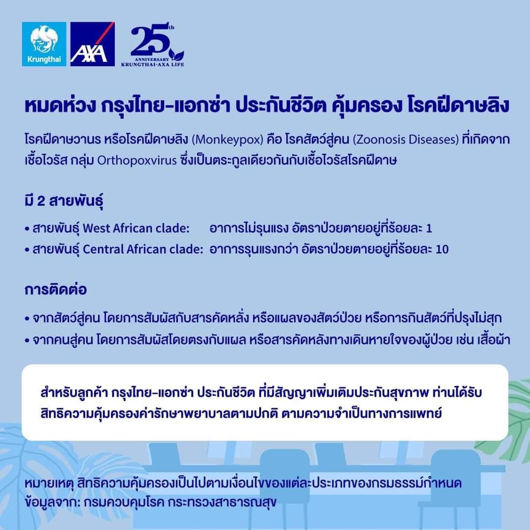 กรุงไทย-แอกซ่า ประกันชีวิต คุ้มครองโรคฝีดาษลิง